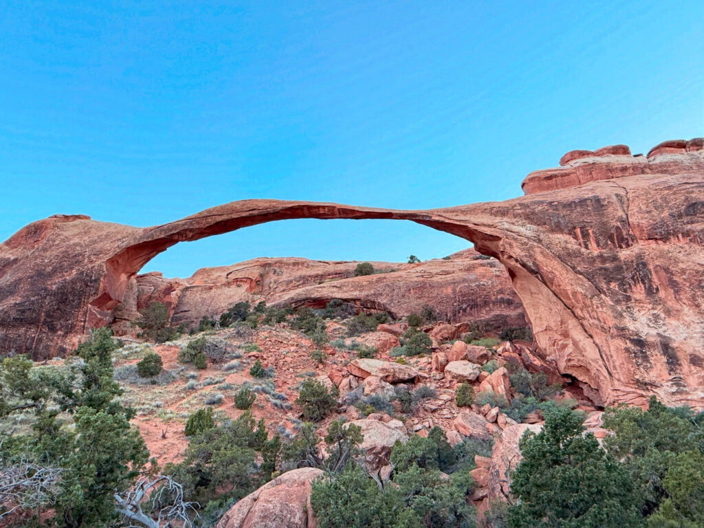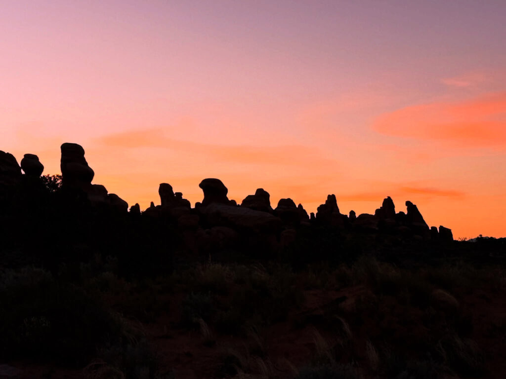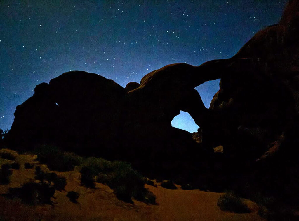 We went back to Arches National Park for a sunset hike to Landscape Arch. It was gorgeous weather and the park was free to enter after 4pm. There were hardly any other hikers, and it was so quiet. We hiked to Double Arch in the moonlight.