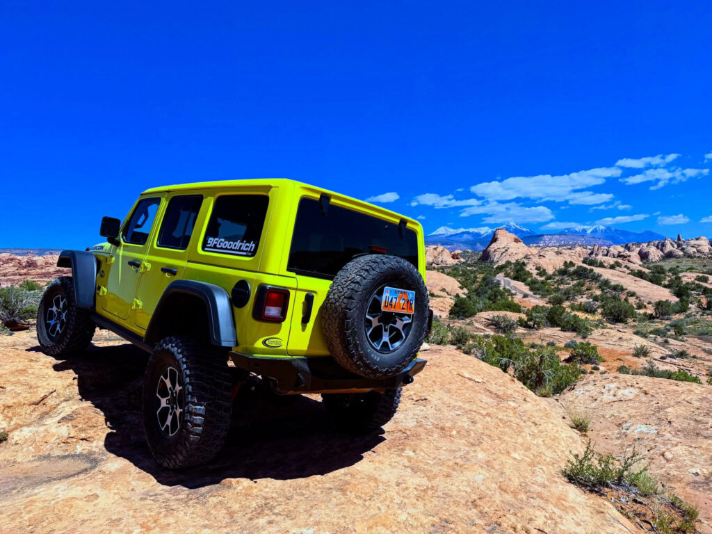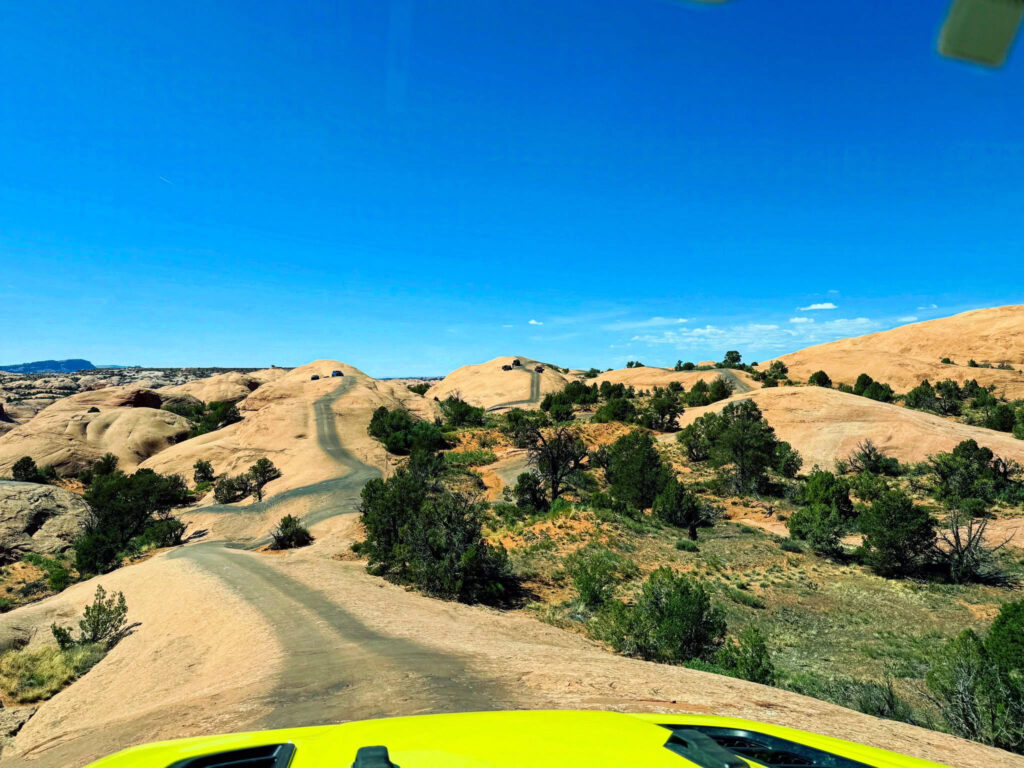 We rented a 4 Wheel Drive Jeep from High Point Hummer and drove Fins & Things trail in Sand Flats Recreation Area. It was so much fun! I’d watched a lot of videos, so I knew what to expect but my husband and sister-in-law were surprised at the steep grade and narrow width of the trails. I thought it would be really sandy, dusty, and hot, but the Jeep had A/C and a cooler full of ice.